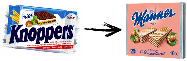 (Firma Manner ma też w ofercie wafelki bardziej przypominające Knoppersa, ale oczywiście zawierające w składzie mleko, nie kupujcie ich ;))